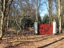 In het bruine, groene omgeving komen ineens deze rode hekken tegen. Ze maken deel uit van de omheining van een groot landhuis dat even verderop staat.